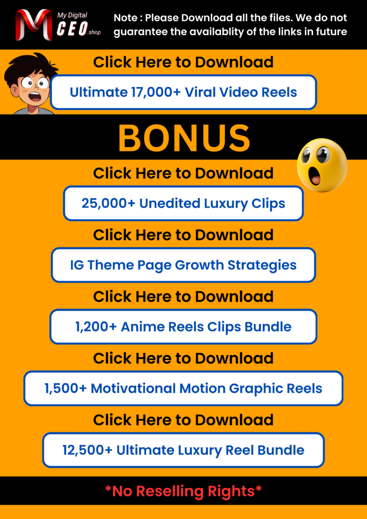 Not just ready to post reelsbyou will also get 25,000+ unedited luxury clips for editing, which you can customize, color-grade, and remix to create high-quality premium content for your luxury or theme pages and stand out from low-quality repost accounts.